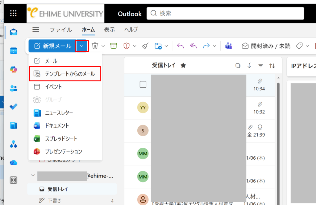1.「新規メール」から「テンプレートからのメール」を選択します。